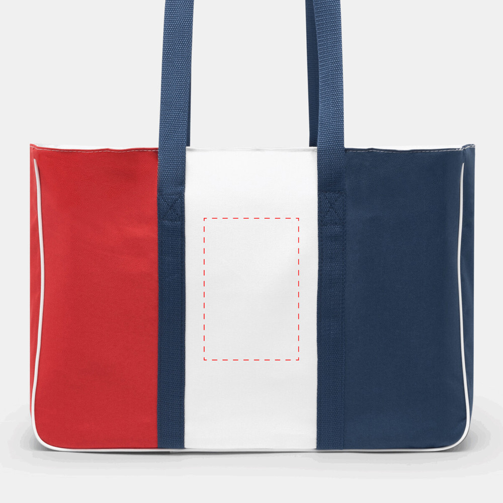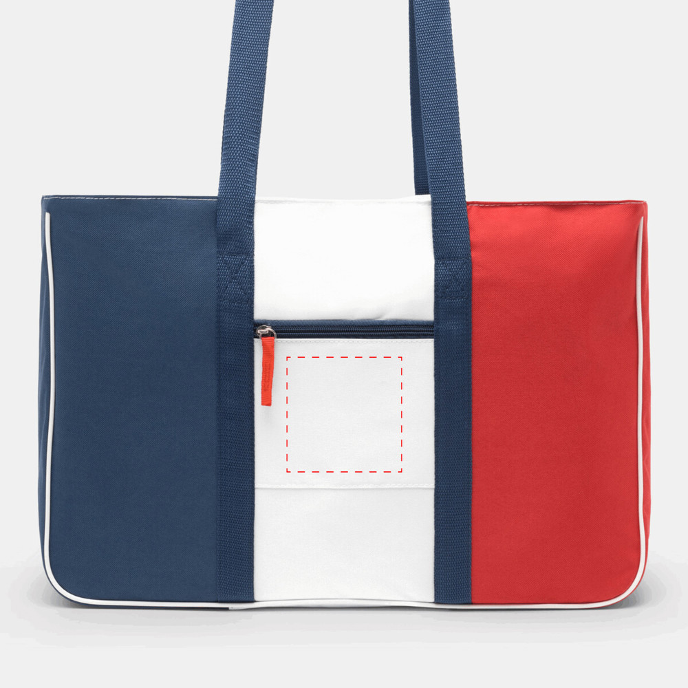 Strandtasche MARINA SAND: Reißverschluss-Vorfach, Reißverschluss-Hauptfach, Reißverschluss-Innenfach, 2 lange Tragegriffe